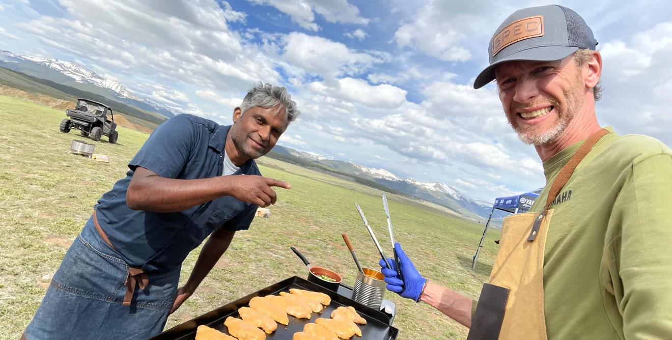 A few years back, I had the opportunity to practice this skill with a pro. Chef Biju Thomas joined one of our Yamaha rides in Taylor Park, Colorado. Each night for a week, he showed me how to prep, chop, grill, and serve for dozens of people under a big tent in the Rockies. It was a lot of work, but it was a thrill.